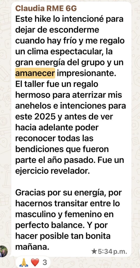 Este taller es el corazón de Amanecer. Un espacio guiado para clarificar los deseos honestos del corazón y aprender a diseñar el año desde un lugar alineado, consciente y posible. No se trata de forzar metas, ni hacer tableros de sueños, sino de escuchar, ordenar y sembrar con intención. A través de prácticas de Coaching, Alineción Energética y Activaciones poderosas, vas a transformar esa claridad interna en una visión para tu año, integrando lo vivido en la montaña al plano cotidiano.